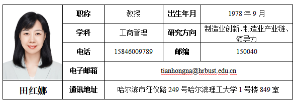 田红娜,博士,博士后,教授,博/硕士生导师,国家一流课程负责人、黑龙江省优秀教师、省级一流课程负责人、黑龙江省高层次人才。主持省部级以上科研项目12项、厅局级项目6项。主要科研成果在SCI、SSCI、CSSCI、EI源刊发表论文近50篇,ESI高被引论文1篇,ESI热点论文1篇,中国知网三高论文1篇。出版学术专著2部,其中独著1部并由国家社科办指定后期资助机构出版。以第一完成人获厅局级以上科研奖励13项。曾获得第四届黑龙江省高校教师教学创新大赛课程思政正高组一等奖、事业单位工作人员嘉奖荣誉等。