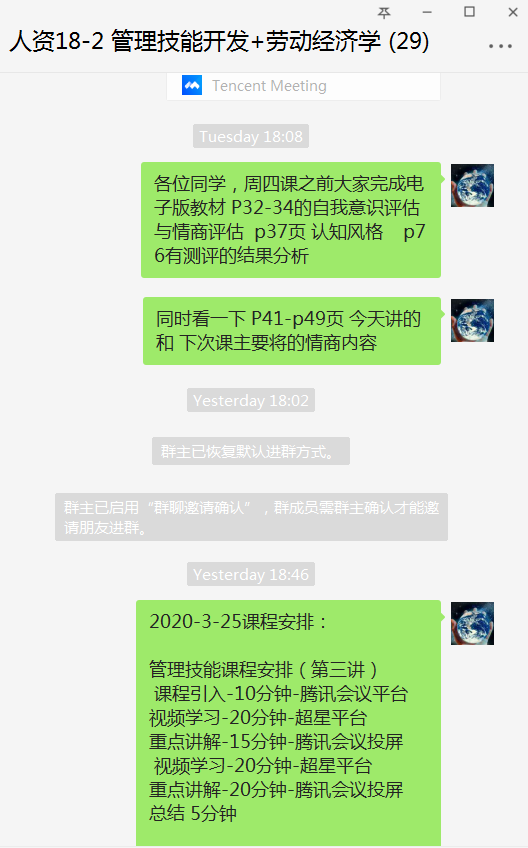 即使有了好的剧本,也需要优秀的“导演”与敬业的“演员”,虽说在线课堂是员工观看老师的“表演”,但在王卫老师看来,老师在其中并不是充当“演员”的角色,而是要做好“导演”,让员工参与课堂,以员工为主体扮演好“演员”角色。王卫老师为保证教学质量,多个终端并行保证教学顺利推行。“笔记本+外接屏幕”保证投屏与平台可同时观看,“麦克风”保证直播语音更加清晰,“数位板”用于保证板书直播的效果;“手机”用于实时关注微信群动态……为了能够保证员工课堂注意力,王卫老师突击学习了在线教学成熟案例与在线教学相关文献,发现研究表明老员工这个年龄段集中注意力的时间一般在20-30分钟,因此,录制的视频多数以10分钟左右为标准,而且采用在线翻转课堂的片段化和碎片化的学习方式可能更符合员工注意力的特点。王卫老师根据课程内容选择合适的直播形式,通过直播分享屏幕方式讲解,充分结合内容特点与员工学习状态反馈,有针对性地选择了WORD直播、PPT直播或板书直播等多种形式,教学过程观看视频、直播讲解、讨论穿插进行。