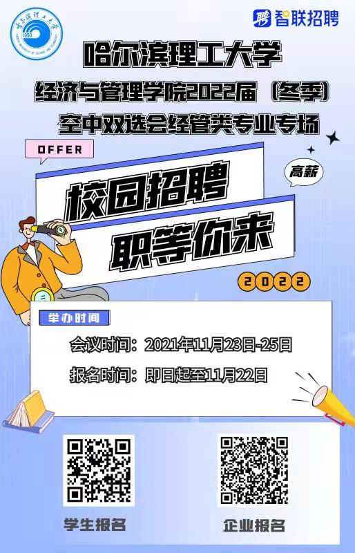 为做好2022届毕业生就业工作,更好的服务于毕业生和用人单位,公司定于2021年11月23日-25日举办2022届(冬季)空中双选会经管类专业专场招聘会,特向广大用人单位发出诚挚邀请,希望您能届时参会。我们将积极配合,竭诚为您服务。现将有关事项告知如下: