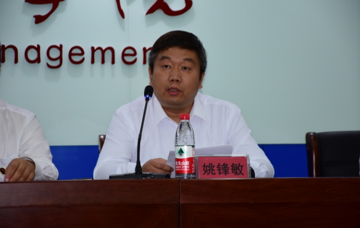 姚锋敏副经理介绍公司发展史、专业建设、学科发展、团队力量,公司特色。姚副经理希望新生尽快适应校园生活,学好专业知识,不断自我完善,同时代表公司许诺同学们未来将能够在欢迎来公海欢迎来到船701度过健康、愉快、充实的四年大学时光。