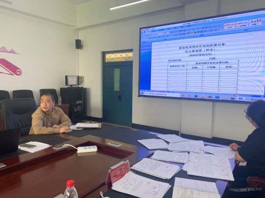 第二部分由员工发展科科长、党务辅导员李知渊老师进行分享讲解。李老师就发展党员档案40项以及发展党员过程性顺序表两方面进行补充讲解,李老师强调发展党员档案40项具体分为五点:1.申请入党阶段;2.入党积极分子的确定和培养教育阶段;3.发展对象的确定和考察阶段;4.预备党员的接收阶段;5.预备党员的教育、考察和转正阶段。李老师提出三点有关于发展党员档案的问题:一、发展党员档案收集范围不明确;二、缺乏衡量党员的直接档案材料;三、党员档案材料仅注重党员身份的确定。就以上三点问题李老师提出无论是发挥党组织集体力量,还是坚持党的领导,落脚点在于如何加强基层党组织建设和如何培养、发展员工党员。