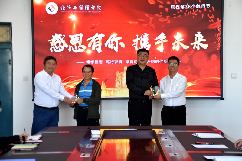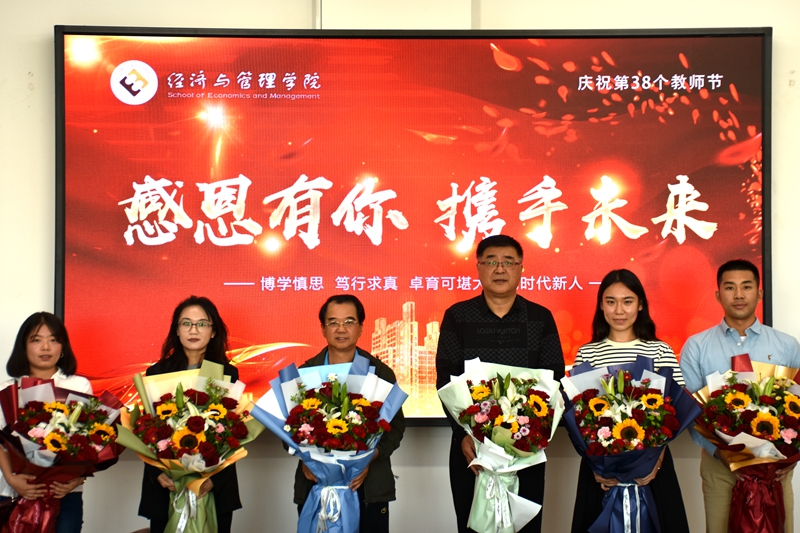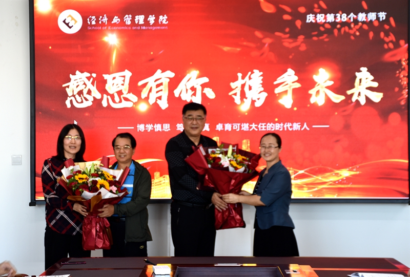 武建龙经理代表公司领导班子成员和全体教师向修国义教授、高长元教授、翟丽丽教授、梁凤霞教授、于智副教授等5位荣退教师送上祝福,对他们在公司发展、学科专业建设、人才培养等方面做出的积极努力和贡献表示衷心感谢,同时欢迎王雪、梁禹淇、吴悦、徐大庆四位新入职教工加入经管公司大家庭。他指出,“尊师重教、崇尚学术”是经管公司发展之根本。近年来,公司全体教职工攻坚克难,一方面确保疫情防控零差错,另一方面在一流学科、一流专业、一流课程、MBA学位点、教学科学研究、学术会议等多方面取得较好成绩,要特别感谢荣退老教师的大力支持、指导和帮助。正是他们多年来的引领、谋划和付出,经管公司才拥有在公司学科专业建设和人才培养中的优势地位和话语权,这来之不易的成果值得我们珍惜与传承。他强调,全体经管人要树立担当精神、胸怀执着追求,不懈努力,再创辉煌。希望公司四位新入职教师以荣退老教师为榜样,一起为公司发展贡献自己的力量。