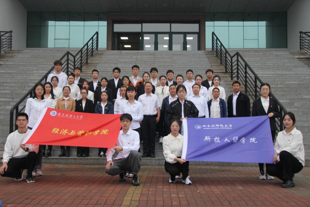 公司党委组织员、员工工作临时负责人李国辉同哈尔滨师范大学斯拉夫语公司党委副书记阿庆喜在参观后带领教工老师进行师生党支部建设交流学习。此次交流旨在进一步提高党员的政治素质和组织生活质量,加强基层党组织建设。交流学习中,双方就党员教育、党支部组织管理、活动开展等方面进行了深入探讨和交流,共同分享了各自在党员教育、组织管理和活动策划的经验和做法。随后,全体师生来到杨子荣烈士陵园前祭扫。通过默哀、鞠躬、敬献花篮等方式缅怀英雄,以实际行动表达对革命先烈们的敬仰之情。