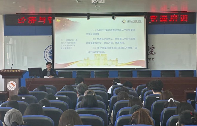 5月9日,党校举办《中国共产党纪律处分条例解读》专题辅导班,由公司党委书记周长群作专题辅导报告,全体学员线下参会,全体教工党员和员工党员通过腾讯会议线上参会。报告围绕新修订的《中国共产党纪律处分条例》,从《中国共产党纪律处分条例》的历次制定修改情况、新修订《中国共产党纪律处分条例》的重点条文、突出特征等方面,进行系统解读。周长群强调,全体党员要把遵规守纪刻印在心,筑牢政治忠诚,练就过硬本领,增强政治定力、纪律定力、道德定力、抵腐定力,增强“四个意识”,坚定“四个自信”,坚定拥护“两个确立”、坚决做到“两个维护”,确保党纪学习教育取得实实在在的成效。
