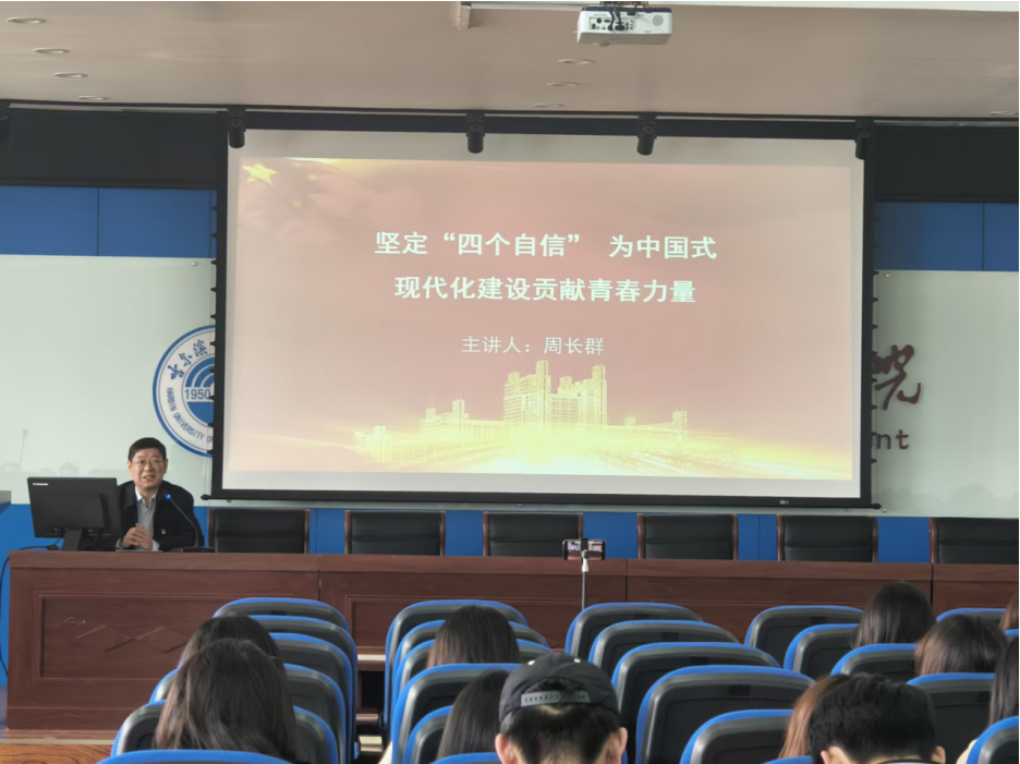 公司党委书记周长群作题为《坚定“四个自信”为中国式现代化建设贡献青春力量》的专题讲座。他从深刻认识中国特色社会主义制度和国家治理体系的显著优势;在比较分析中坚定“四个自信”;弘扬长征精神,走好新时代的长征路三个方面深入剖析坚定“四个自信”对推进中国特色社会主义事业的重要意义。他强调,“四个自信”是习近平新时代中国特色社会主义思想的重要内容,是建设中国特色社会主义事业的强大动力,也是全面建成小康社会和实现中华民族伟大复兴中国梦的根本保障。他勉励学员要厚植家国情怀,弘扬革命精神,把对祖国血浓于水、与人民同呼吸共命运的情感贯穿学业全过程,努力学习,提高本领,为中国式现代化建设贡献青春力量。