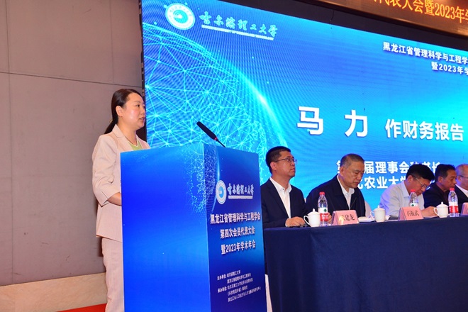 东北农业大学马力秘书长作《黑龙江省管理科学与工程学会第二届理事会财务报告》并宣读《黑龙江省管理科学与工程学会章程》修改草案