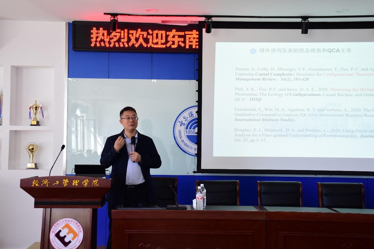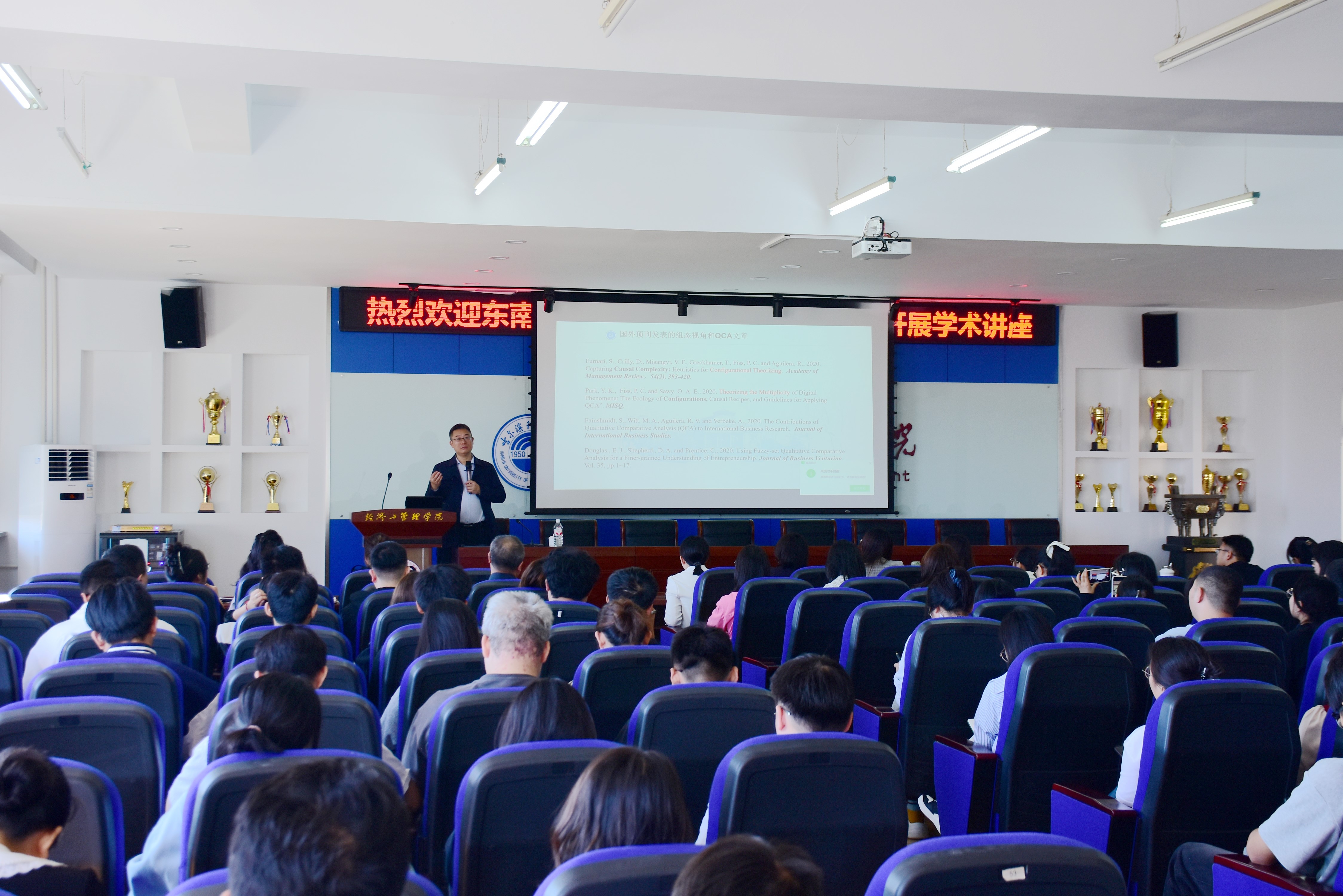 2025年9月17日,东南大学经济管理公司杜运周教授应邀莅临公司,作题为“组态视角与QCA方法:原理与应用”的专题讲座。本次讲座由公司副经理董媛媛主持,公司经理王莉静、青年教师及研究生共同出席。