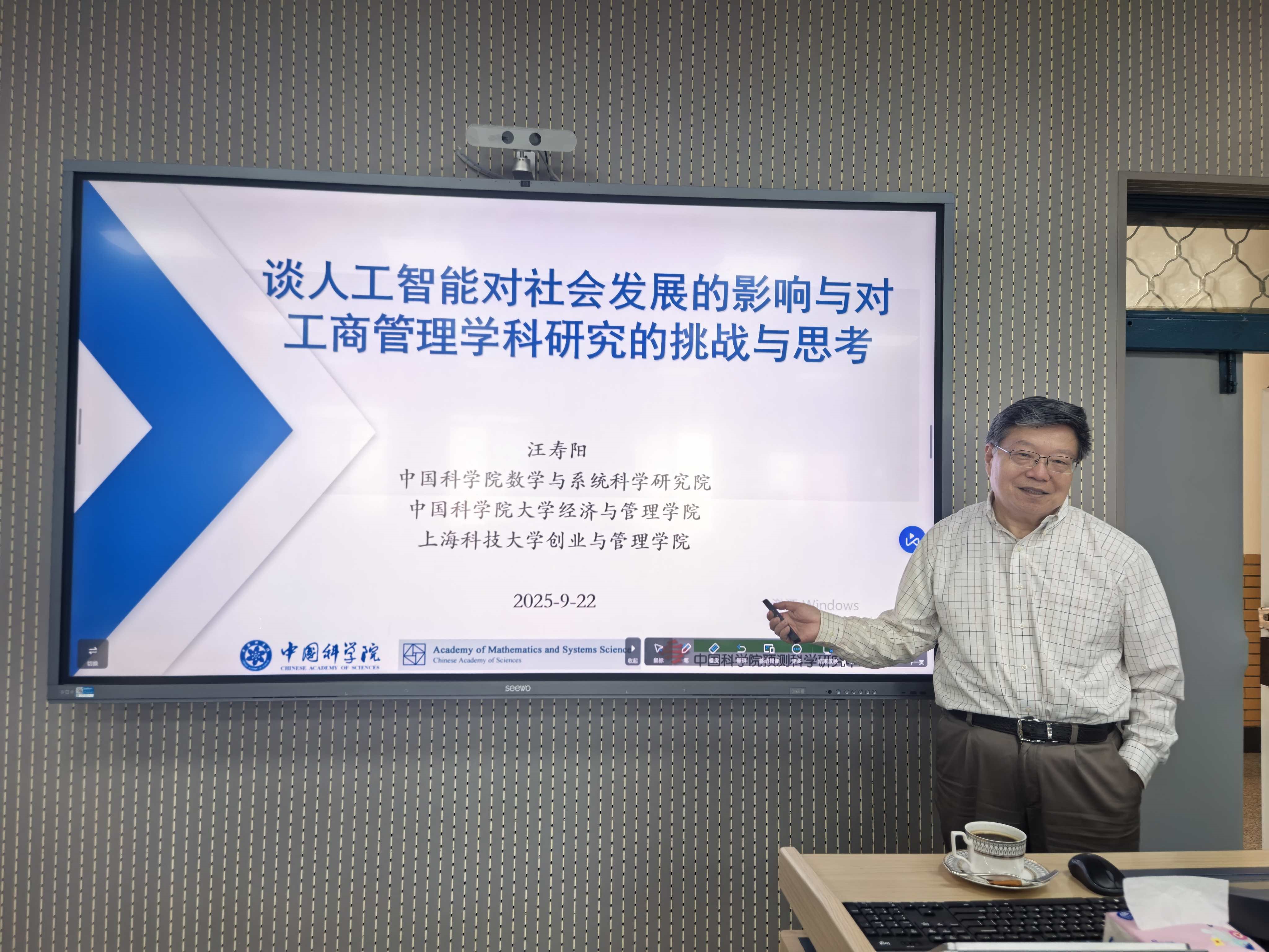 为切实提高公司科研创新水平,全面提升教师的科研素养与能力,公司特邀发展中国家科公司院士、国际系统与控制科公司院士、中国科公司特聘研究员汪寿阳教授来院开展题为“谈人工智能对社会发展的影响与对工商管理学科研究的挑战与思考”的学术讲座。公司经理王莉静、副经理董媛媛、骨干教师及硕博研究生参加了本次活动。