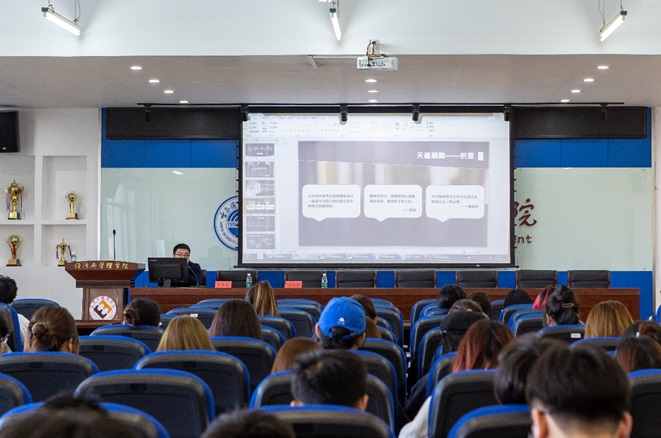 董隽哲副局长以自身经历,生动形象地向同学们阐述了如何调整心态、如何积累知识储备、有效安排时间以及业精于勤对于考取公务员的重要性。他强调了良好的学习习惯的养成、充分利用碎片化时间、寻找适合自己的学习方法、保持独立自主的学习状态以及与老师和同学保持良好的沟通等五个方面的学习建议。这为陷入备考焦虑及迷茫的学子们打了一针强心剂,使他们对未来的备考有了更清晰的认识和更充足的信心。