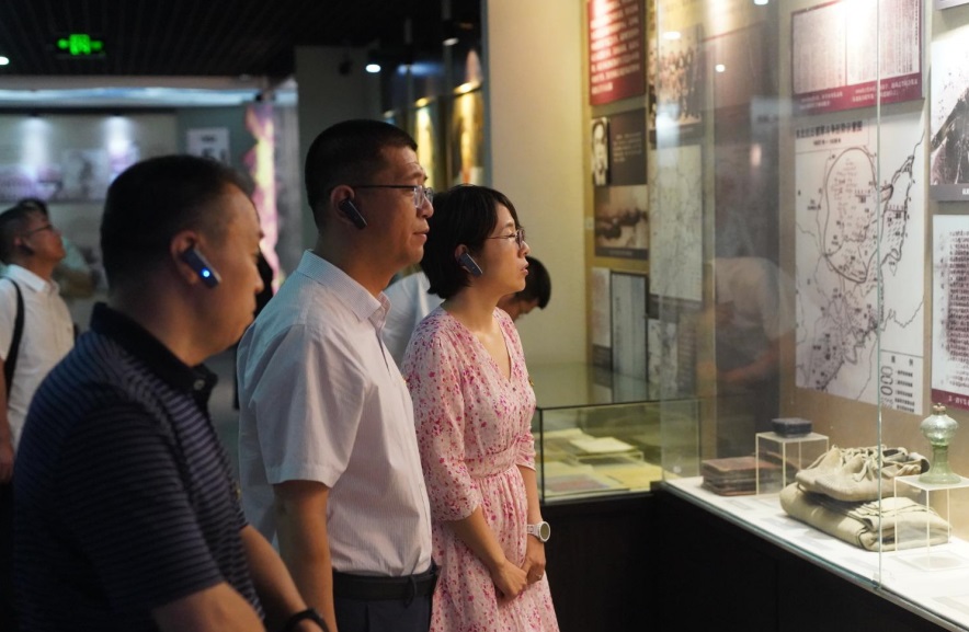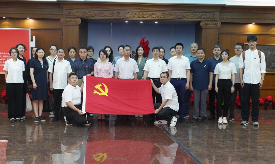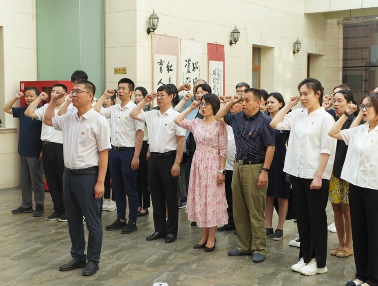 纪念馆宣誓厅,悬挂着鲜艳的中国共产党党旗。在武建龙经理领誓下,大家面对党旗,庄严宣誓,一起重温入党誓词,牢记为党育人、为国育才初心使命。